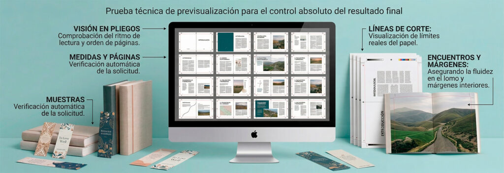 Para que tengas el control absoluto sobre el resultado final, generamos un Ferro Digital paginado. Se trata de una prueba técnica que te permite visualizar tu obra tal y como se verá tras el proceso de encuadernación.